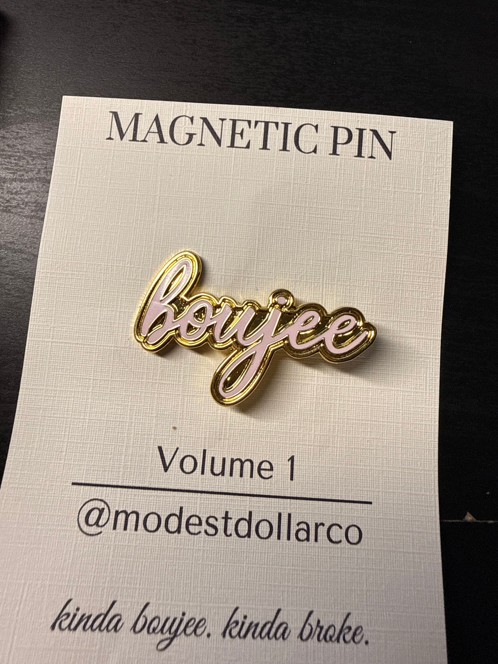 Boujee Script Magnetic Pin — Color Options